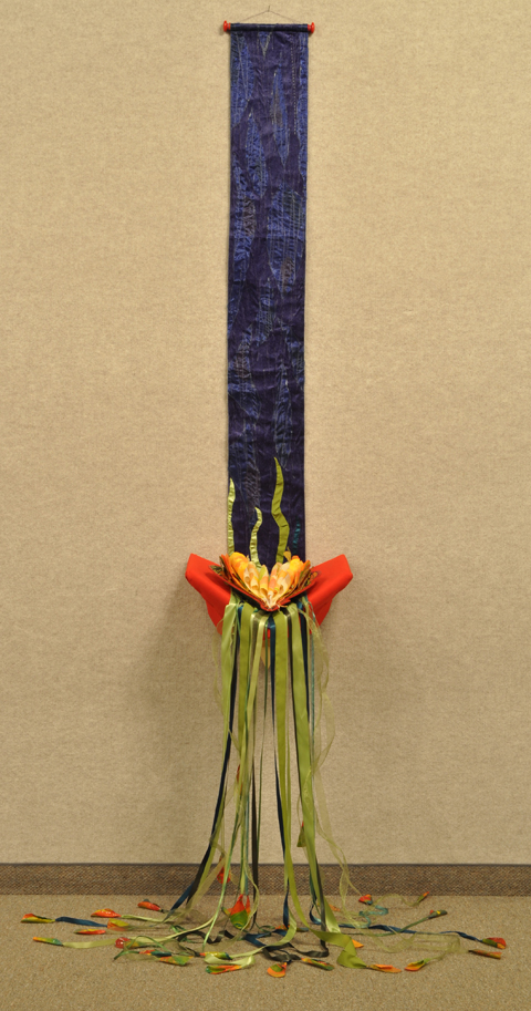 A Sliver is Hope, Rachel Durfee, ©2013, color woodcuts, watercolor and thread, framed size 48″ x 25 1/2″ x 5″